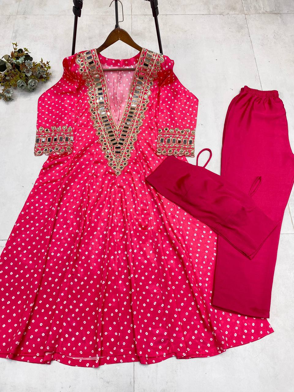 FABRIC:.DIGITAL PRINTED CHINON WITH REAL MIRROR AND EMBROIDERY WORK