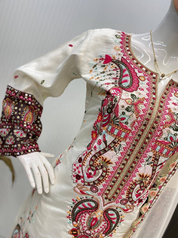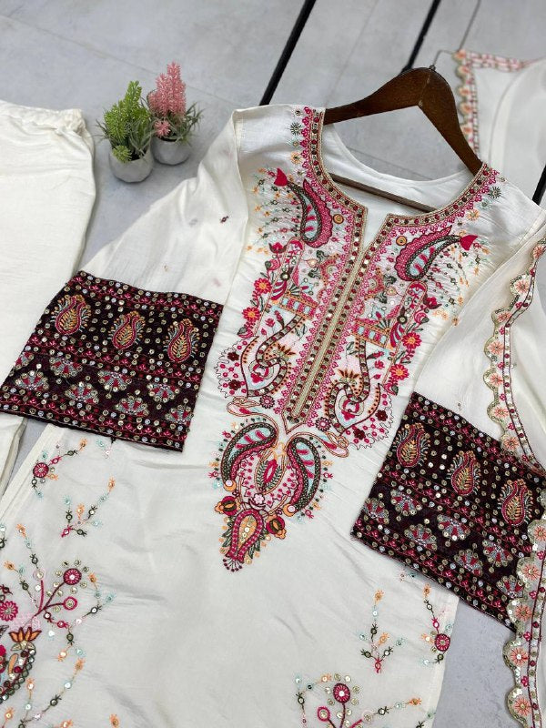 DESIGNER WEAR PLAZZO SUIT IN THREE PIECE WITH SEQUENCE EMBROIDERY WORK