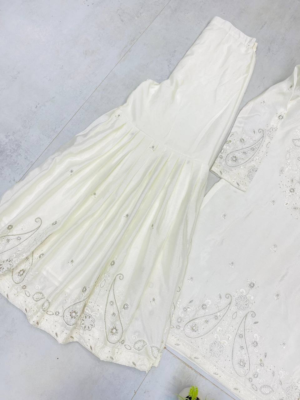 DESIGNER WEAR SARARA SUIT IN THREE PIECE WITH SEQUENCE EMBROIDERY WORK