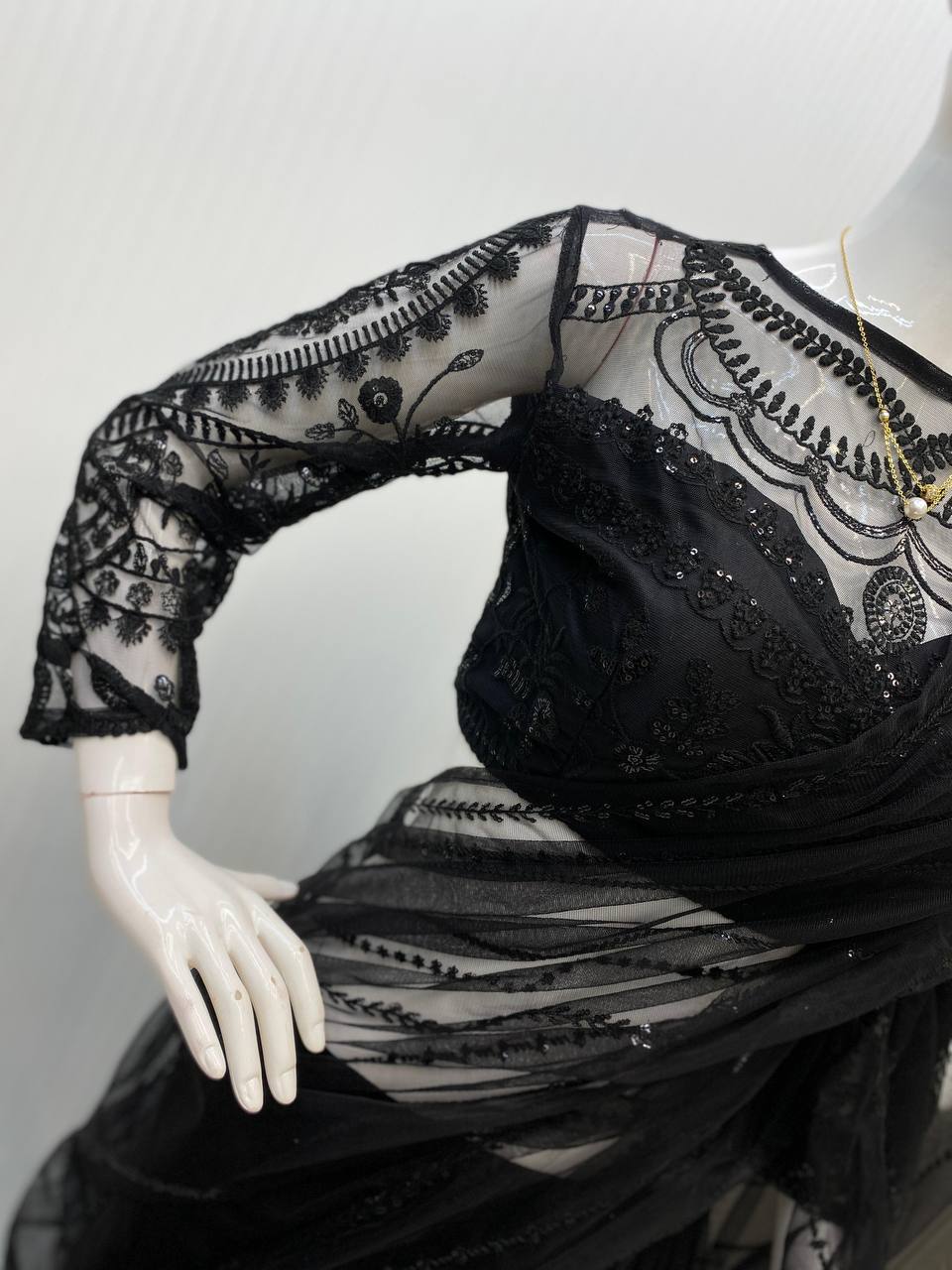 FABRIC:.BUTTERFLY NET WITH SEQUENCE EMBROIDERED WORK