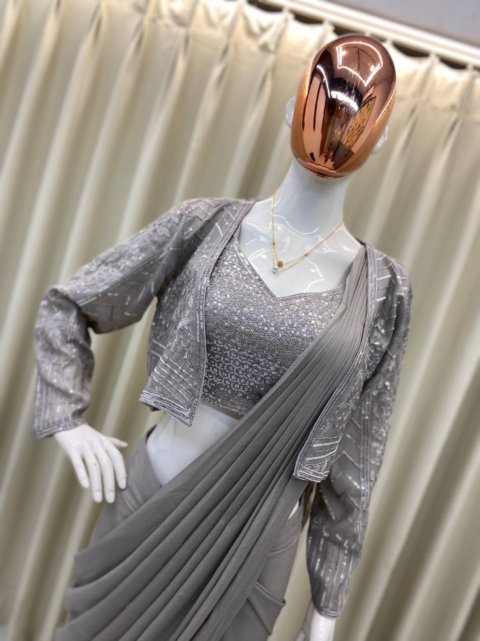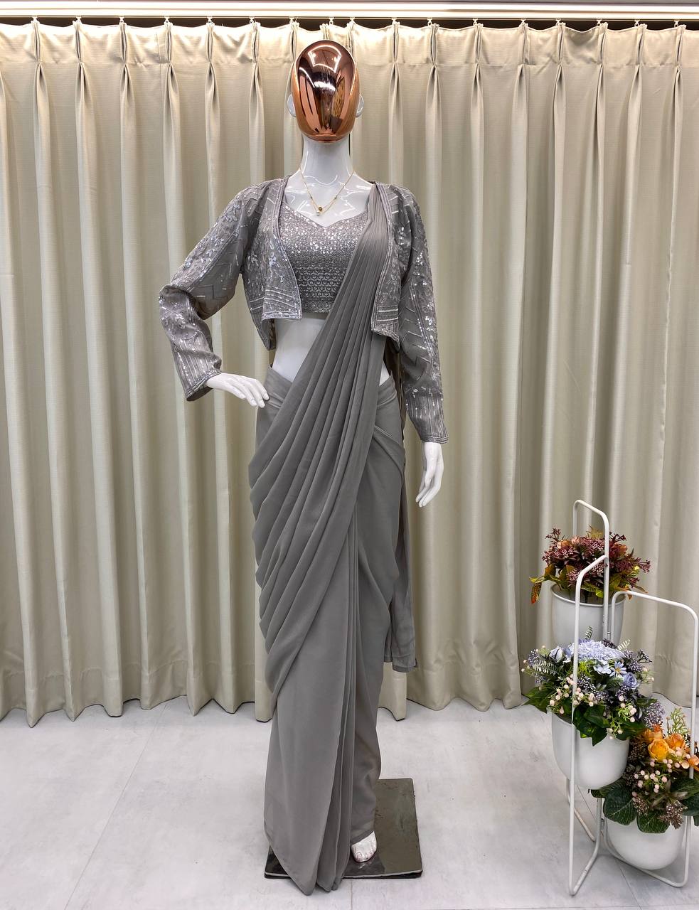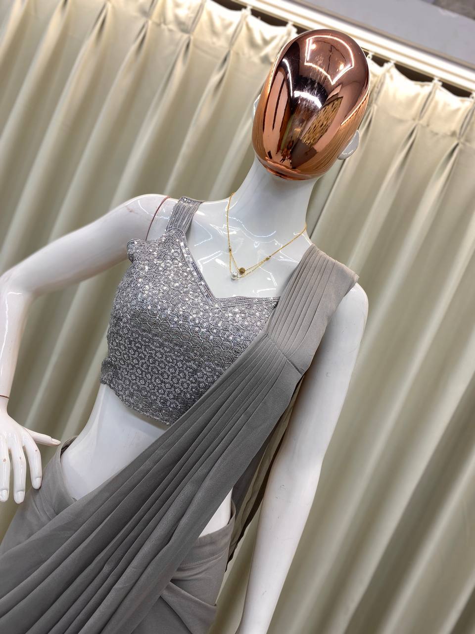 TRENDING NEW FANCY READY TO WEAR STAR GEORGETTE SEQUENCE WORK SAREE WITH KOTI AND FULLSTITCHED BLOUSE