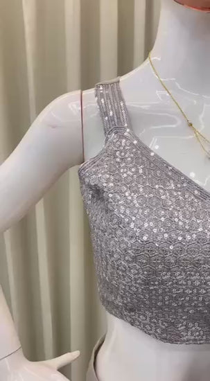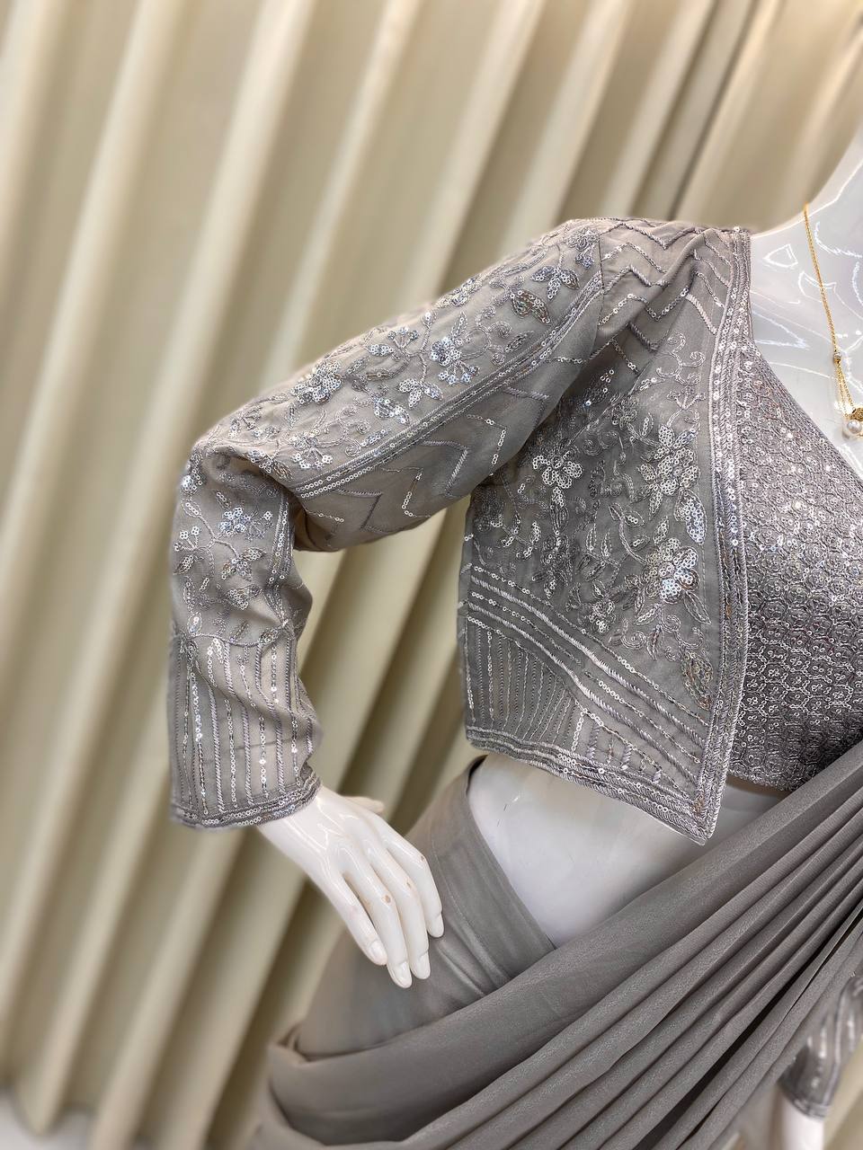 BLOUSE : STAR GEORGETTE WITH SEQUANCE EMBROIDERY WORK FULLSTITCHED FREE SIZE UP TO XXL