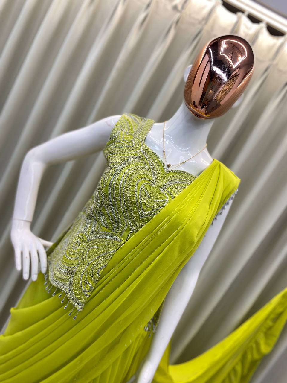 TRENDING NEW FANCY READY TO WEAR STAR GEORGETTE SEQUENCE WORK SAREE WITH KOTI AND FULLSTITCHED BLOUSE