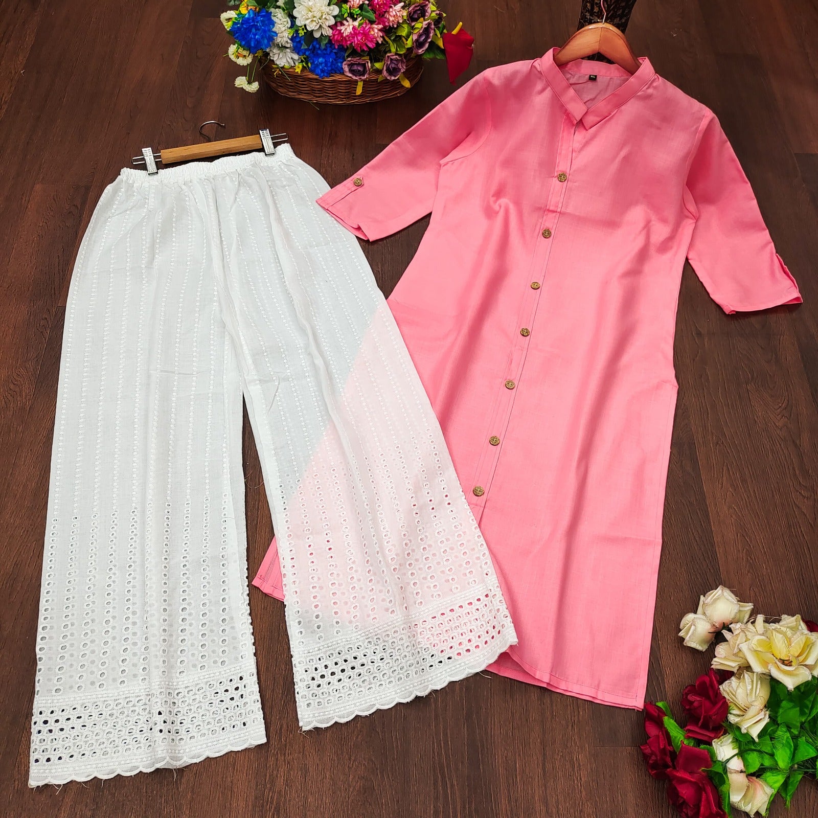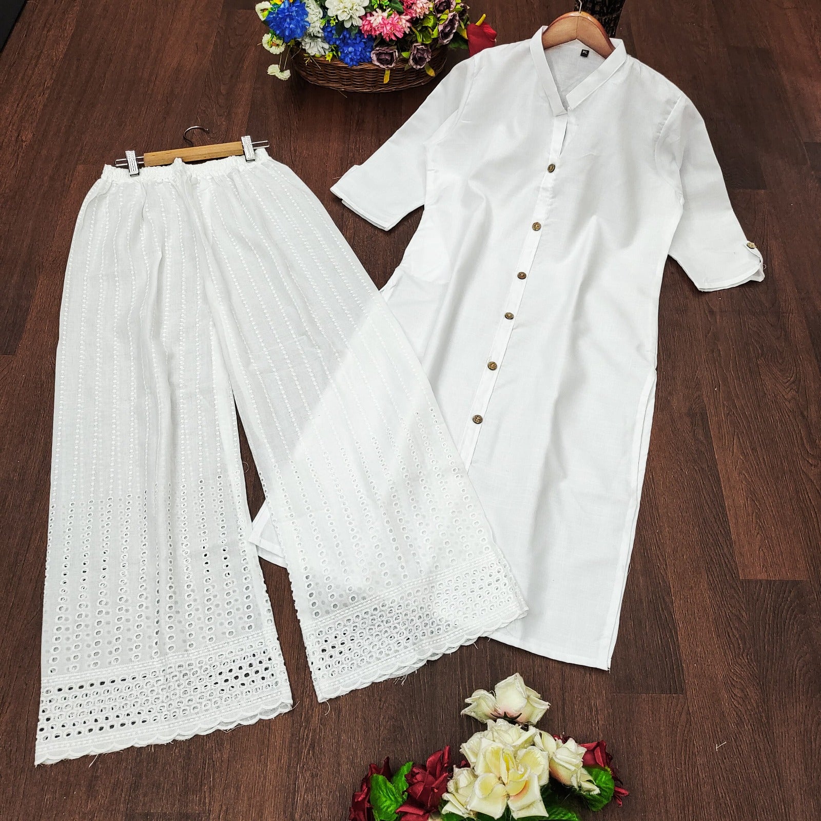 Premium Cotton Top with beautiful Wooden Botton work & Cotton Plazo chikankari work QUALITY PRODUCT FOR QUALITY CUSTOMER
