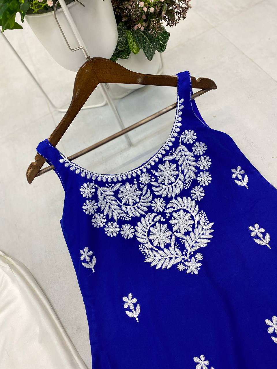 DESIGNER AND REGULAR WEAR TOP AND PLAZZO WITH EMBROIDERY WORK